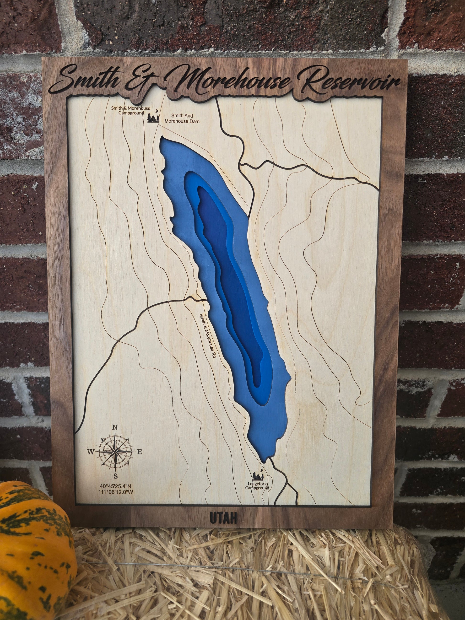 Smith & Morehouse Reservoir Layered Wood Map | Utah Gifts | Topographic Map